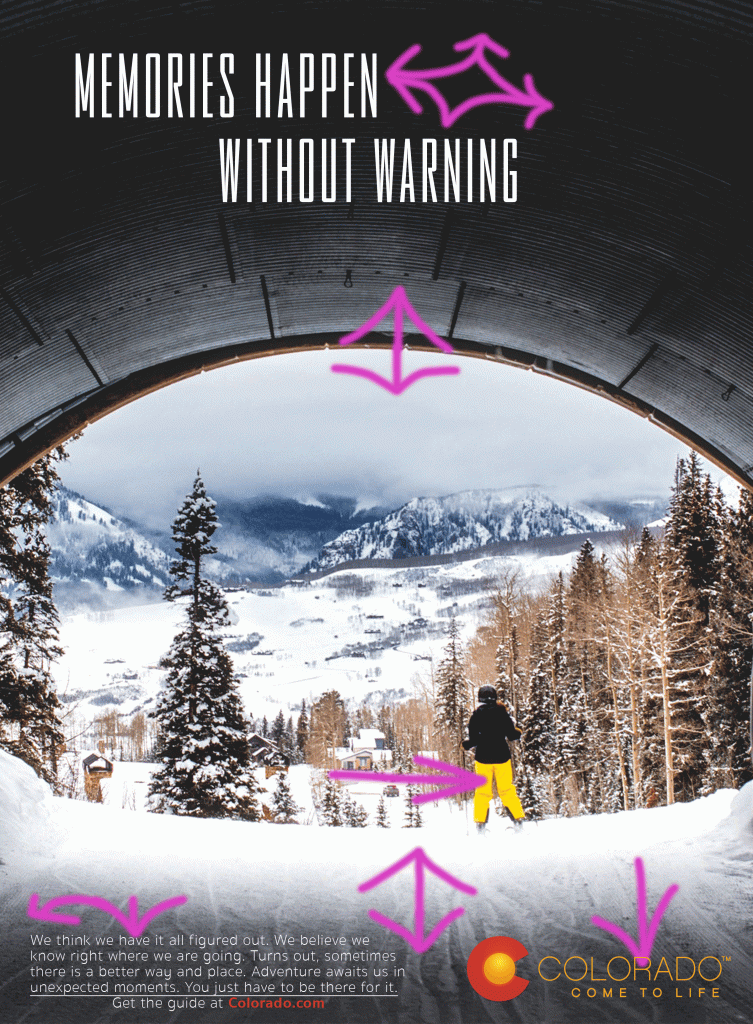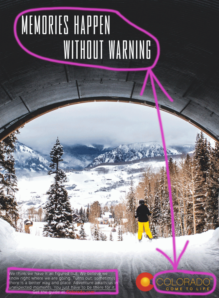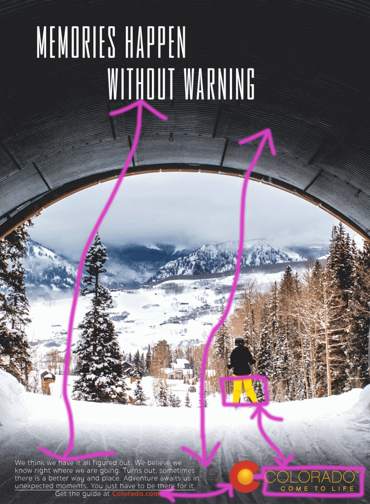 This capture of nature by A.T. Cole on his property displays several elements of design I am in search of understanding. The photograph is the highlight of an article found in the Mother Earth News February/March 2020 issue beginning on page 18. We see in the image and typeface many examples of the elements being taught in the Visual Media course I am currently taking at BYU Idaho under the direction of my fabulous teacher Sister Barney. These elements are subtle in this spread which provides a greater challenge compared to a more dramatic contrast of design.